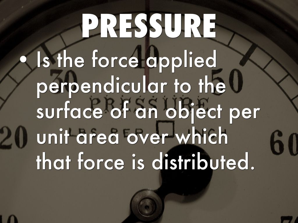 • Is the force applied perpendicular to the surface of an object per unit area over which that force is distributed.