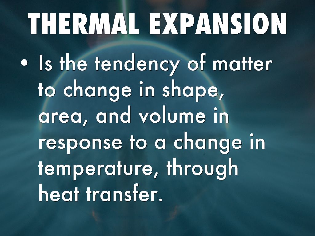 • Is the tendency of matter to change in shape, area, and volume in response to a change in temperature, through heat transfer.
