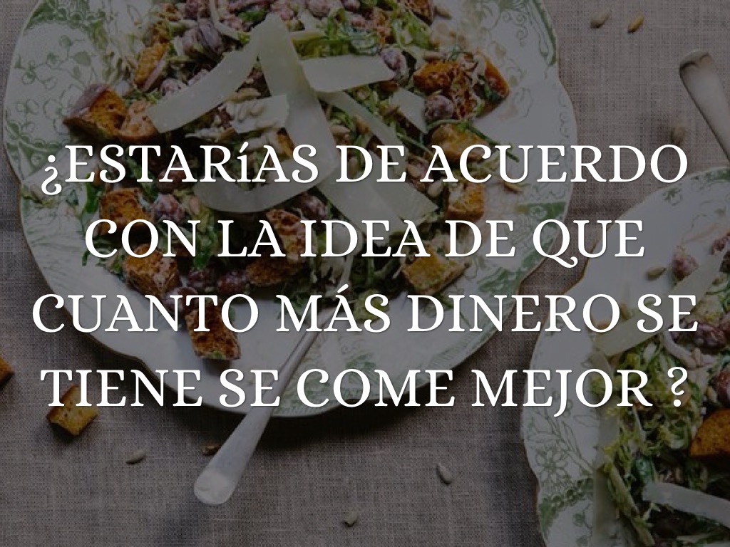 ¿ESTARíAS DE ACUERDO CON LA IDEA DE QUE CUANTO MÁS DINERO SE TIENE SE COME MEJOR ?