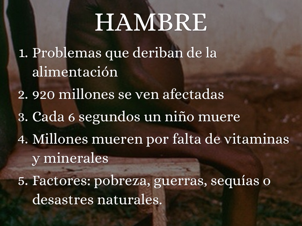 Factores: pobreza, guerras, sequías o desastres naturales.