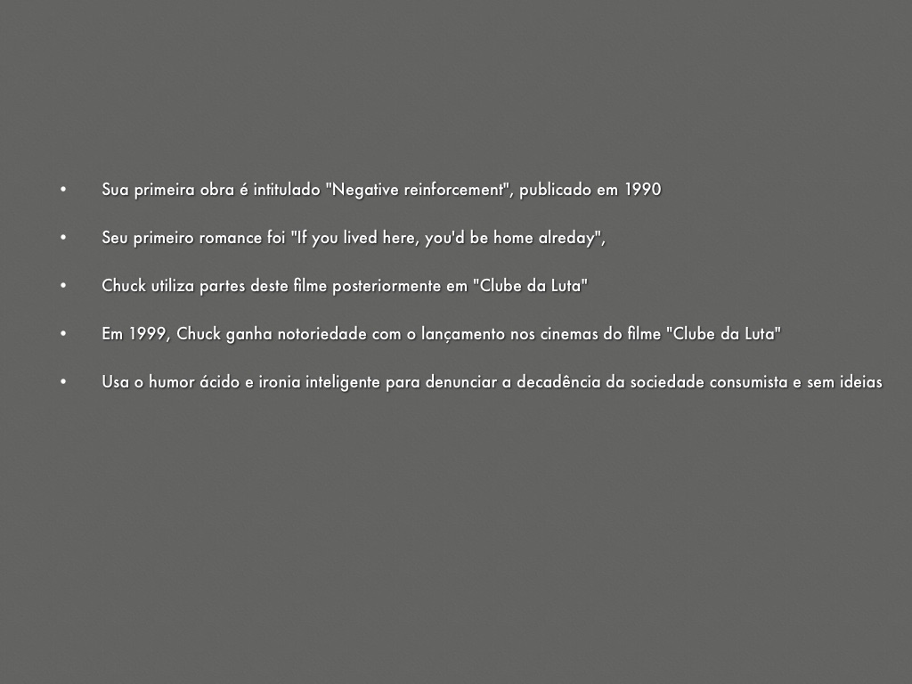 • Seu primeiro livro publicado foi Clube da Luta em 1996