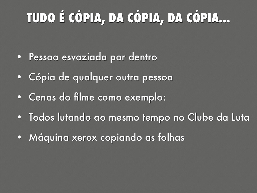 TUDO É CÓPIA, DA CÓPIA, DA CÓPIA...