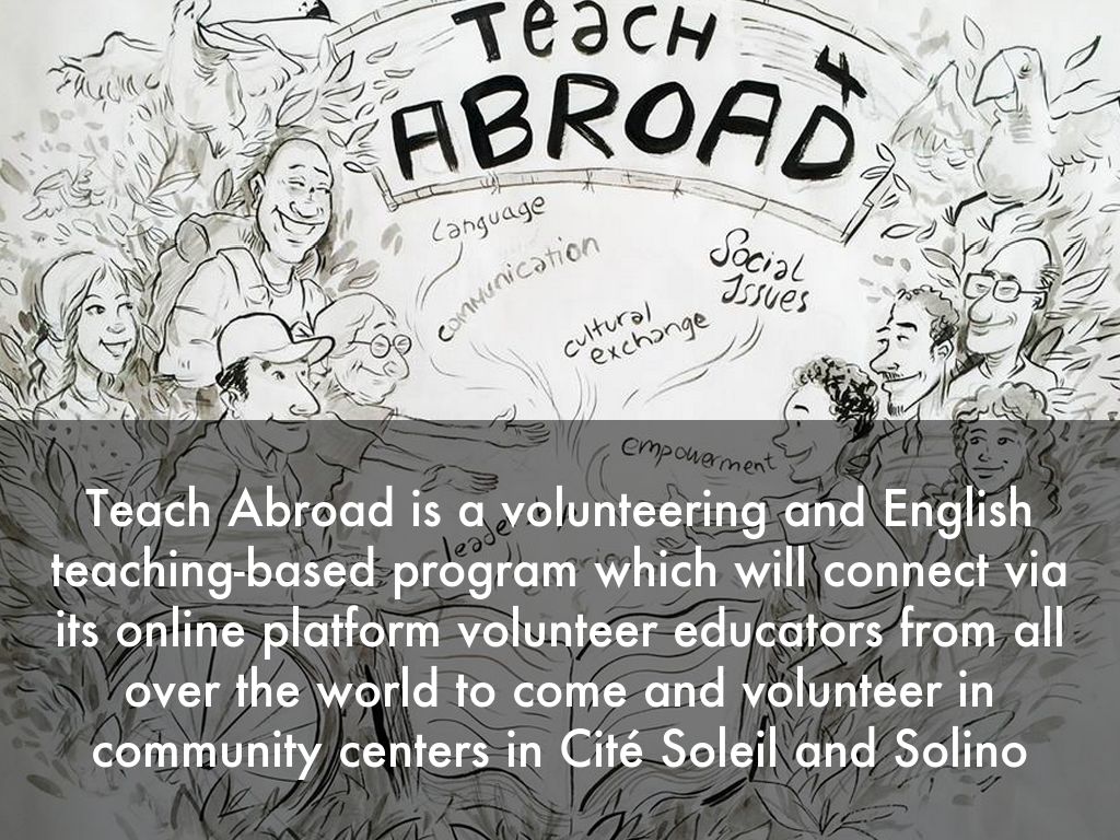 Teach Abroad is a volunteering and English teaching-based program which will connect via its online platform volunteer educators from all over the world to come and volunteer in community centers in Cité Soleil and Solino