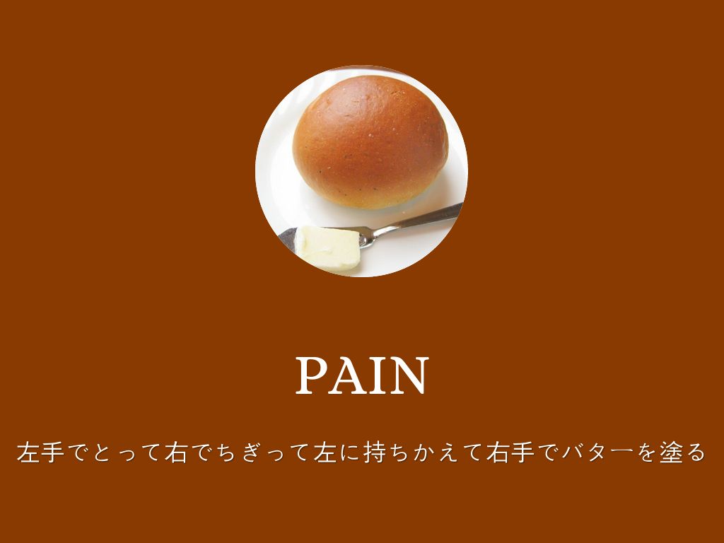 左手でとって右でちぎって左に持ちかえて右手でバターを塗る