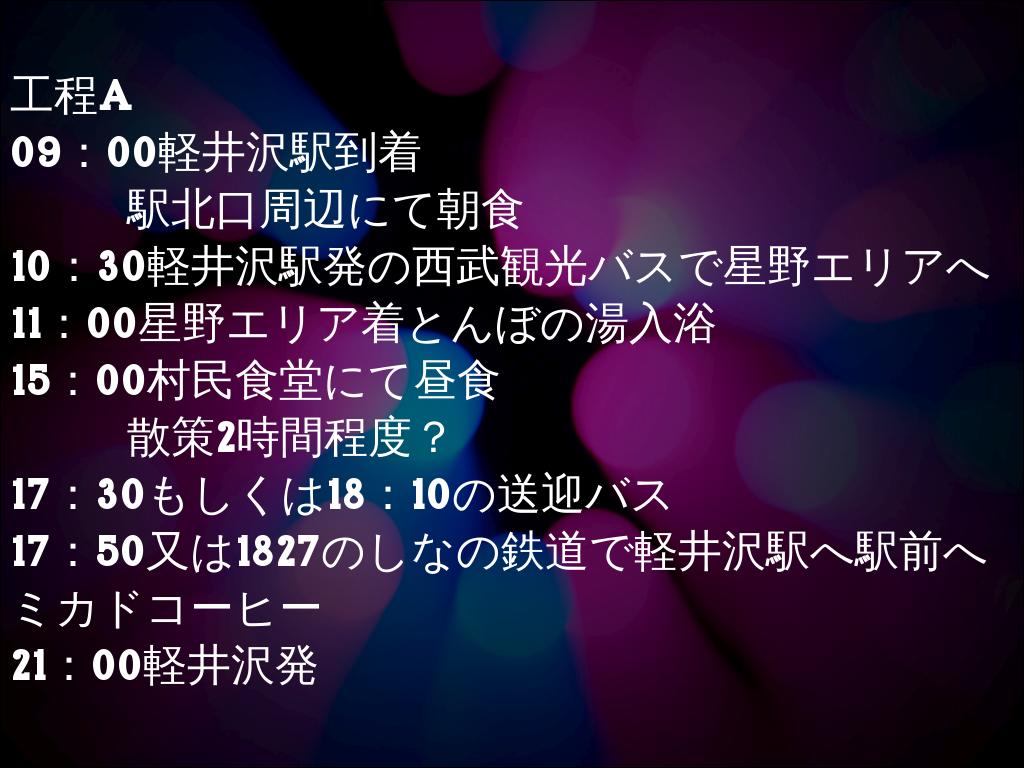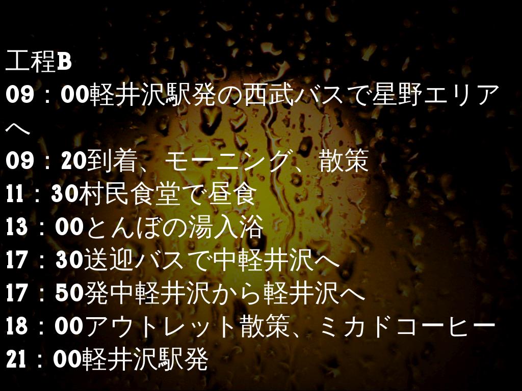 17:30送迎バスで中軽井沢へ