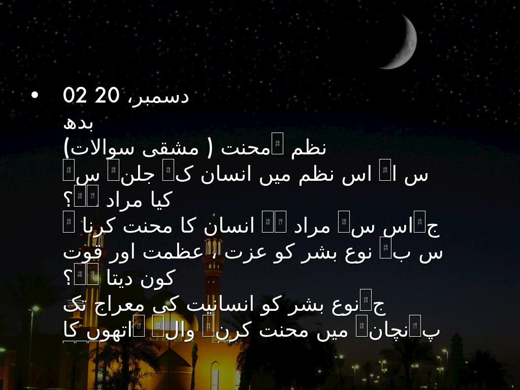 نظم ۔محنت ( مشقی سوالات)