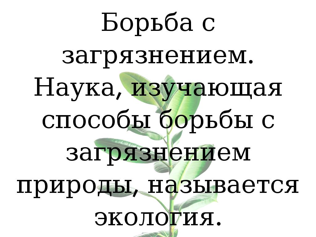 Наука, изучающая способы борьбы с загрязнением природы, называется экология.