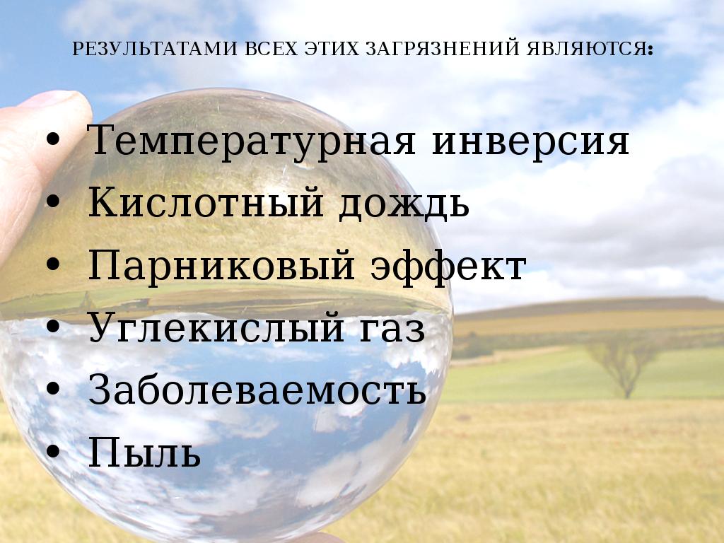 РЕЗУЛЬТАТАМИ ВСЕХ ЭТИХ ЗАГРЯЗНЕНИЙ ЯВЛЯЮТСЯ: