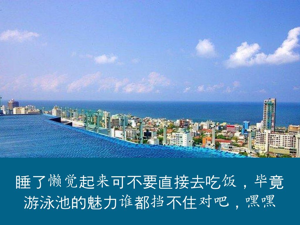 睡了懒觉起来可不要直接去吃饭,毕竟游泳池的魅力谁都挡不住对吧,嘿嘿