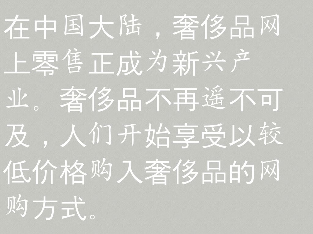 在中国大陆,奢侈品网上零售正成为新兴产业。奢侈品不再遥不可及,人们开始享受以较低价格购入奢侈品的网购方式。