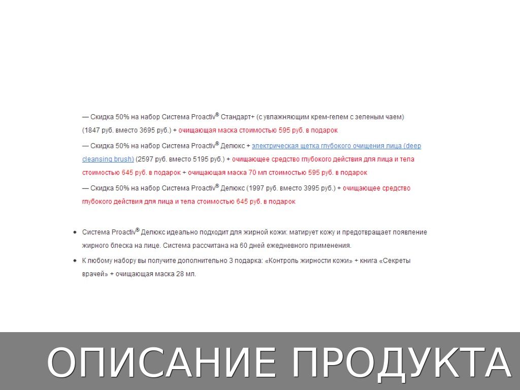 ПЛОХО РАСКРЫТ ПРОДУКТ