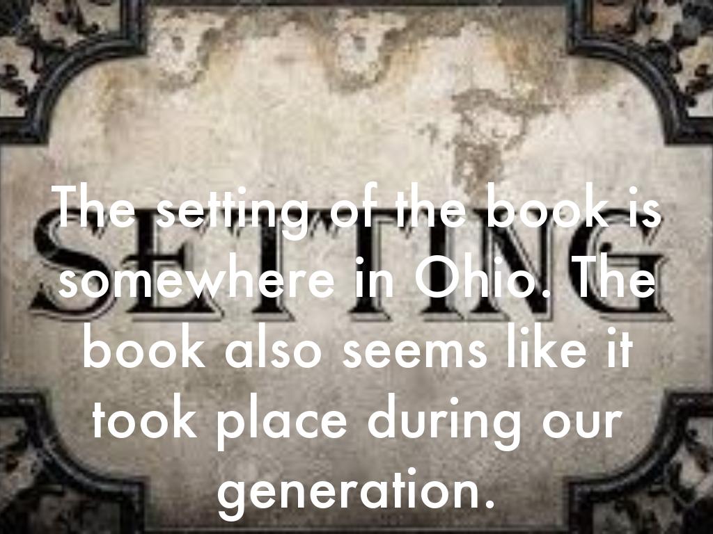 The setting of the book is somewhere in Ohio. The book also seems like it took place during our generation.
