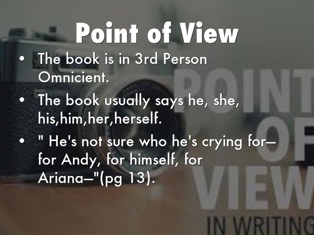 " He's not sure who he's crying for— for Andy, for himself, for Ariana—"(pg 13).