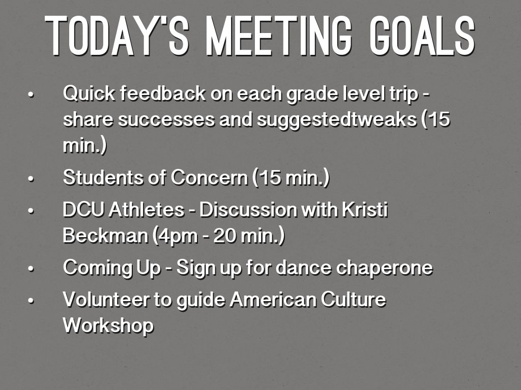 Today's Meeting Goals