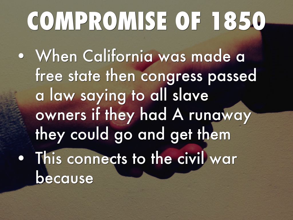 When California was made a free state then congress passed a law saying to all slave owners if they had A runaway they could go and get them