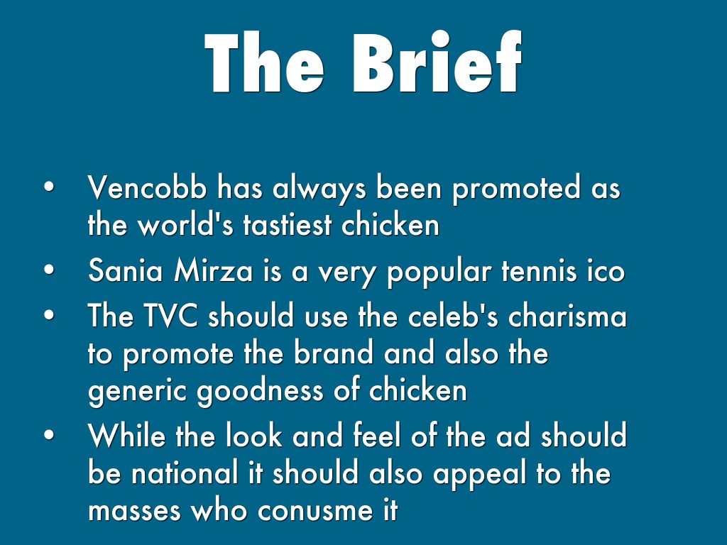 The TVC should use the celeb's charisma to promote the brand and also the generic goodness of chicken