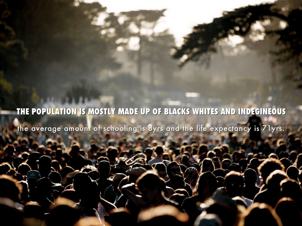 THE POPULATION IS MOSTLY MADE UP OF BLACKS WHITES AND INDEGINEOUS