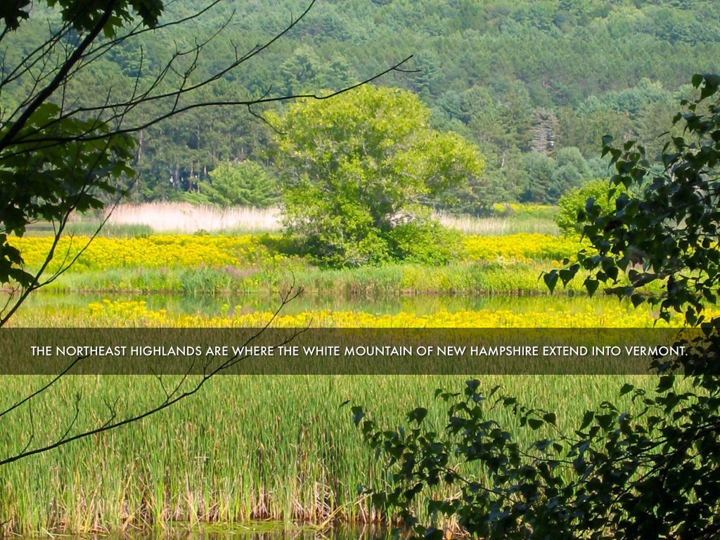 THE NORTHEAST HIGHLANDS ARE WHERE THE WHITE MOUNTAIN OF NEW HAMPSHIRE EXTEND INTO VERMONT.