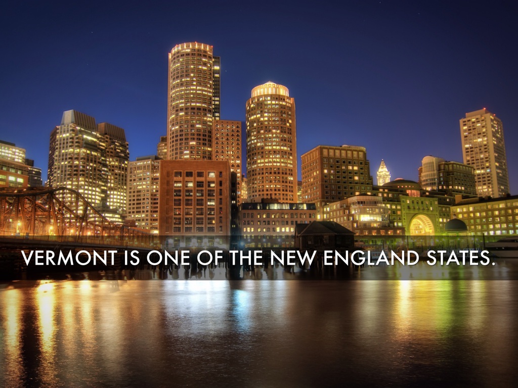 VERMONT IS ONE OF THE NEW ENGLAND STATES.