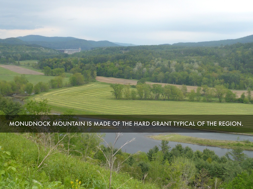 MONUDNOCK MOUNTAIN IS MADE OF THE HARD GRANT TYPICAL OF THE REGION.