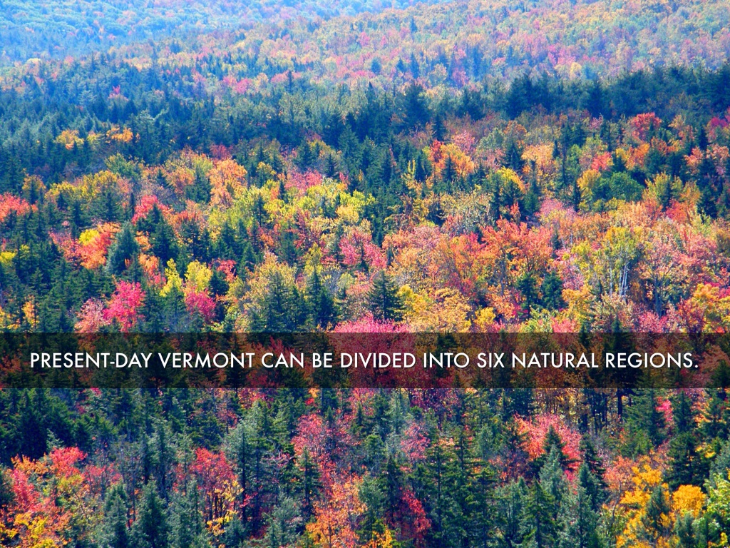 PRESENT-DAY VERMONT CAN BE DIVIDED INTO SIX NATURAL REGIONS.