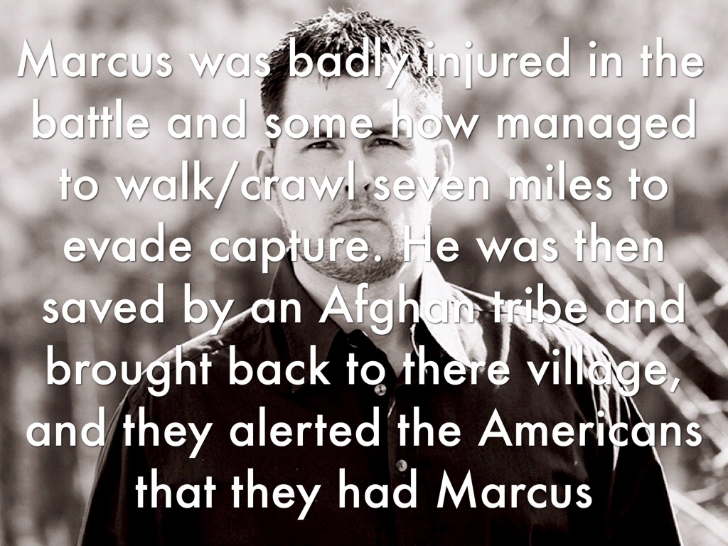 Marcus was badly injured in the battle and some how managed to walk/crawl seven miles to evade capture. He was then saved by an Afghan tribe and brought back to there village, and they alerted the Americans that they had Marcus