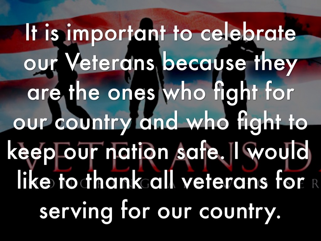 It is important to celebrate our Veterans because they are the ones who fight for our country and who fight to keep our nation safe. I would like to thank all veterans for serving for our country.