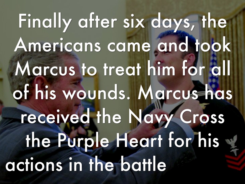 Finally after six days, the Americans came and took Marcus to treat him for all of his wounds. Marcus has received the Navy Cross the Purple Heart for his actions in the battle