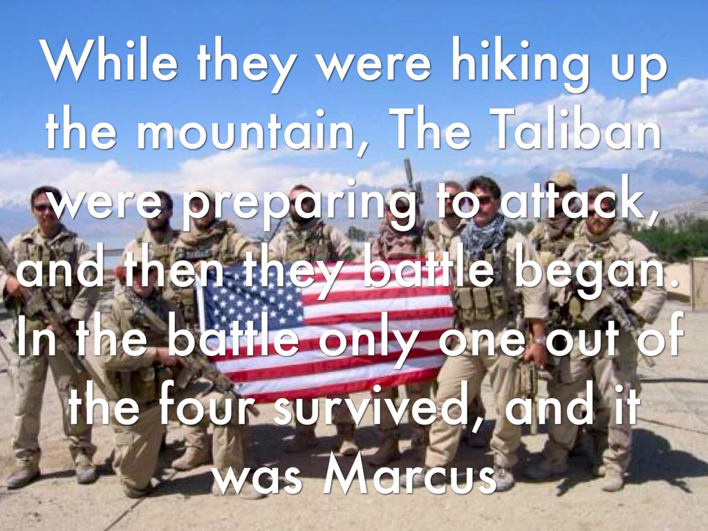 While they were hiking up the mountain, The Taliban were preparing to attack, and then they battle began. In the battle only one out of the four survived, and it was Marcus