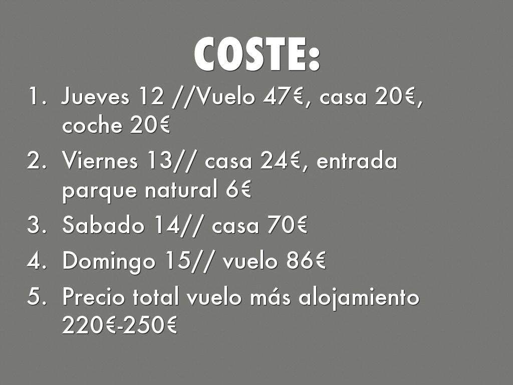 • Jueves 12 //Vuelo 47€, casa 20€, coche 20€
