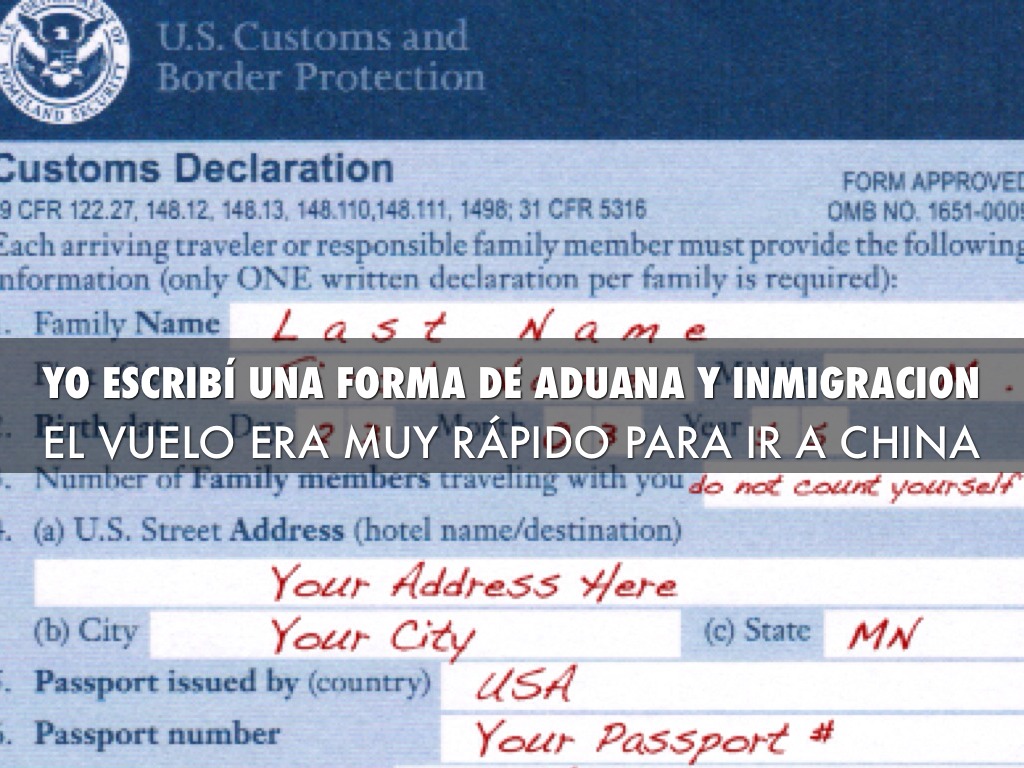 Yo escribí una forma de aduana y inmigracion
