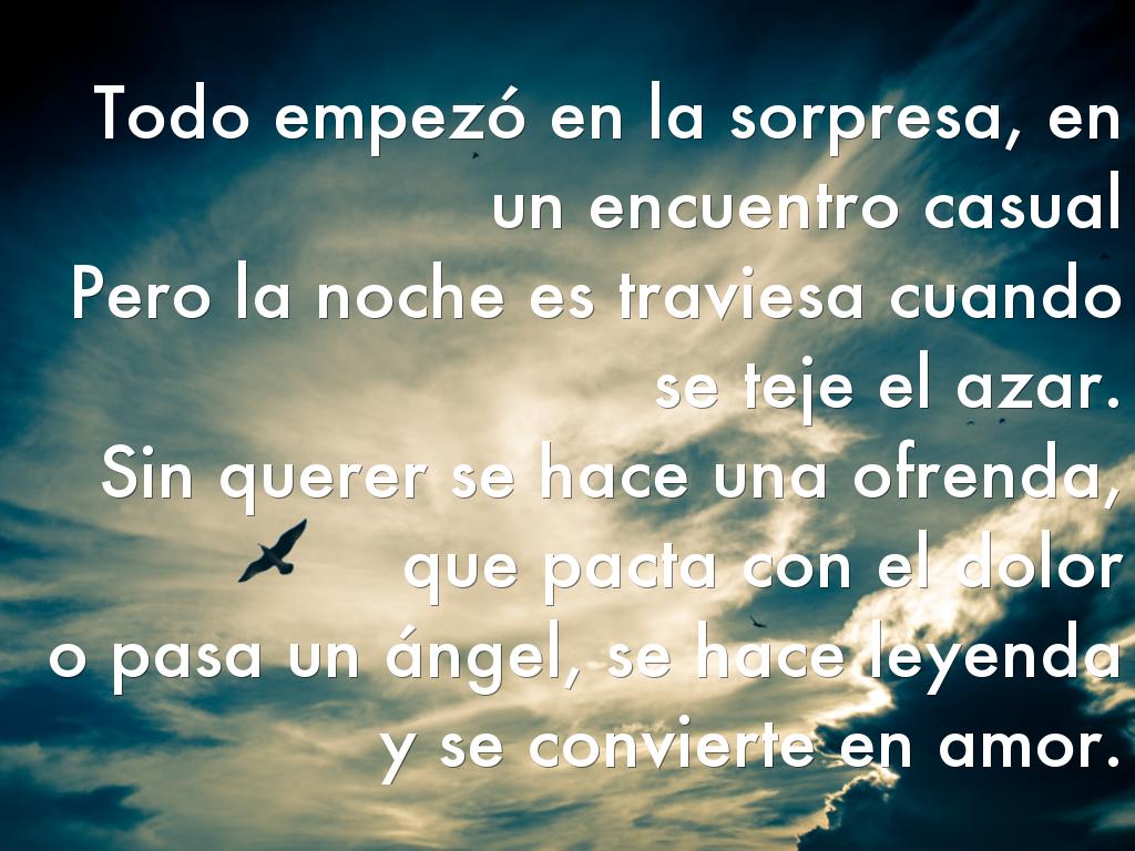 o pasa un ángel, se hace leyenda y se convierte en amor.