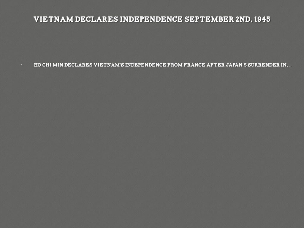 • Ho chi min declares vietnam's independence from france after Japan's surrender in world war 2.