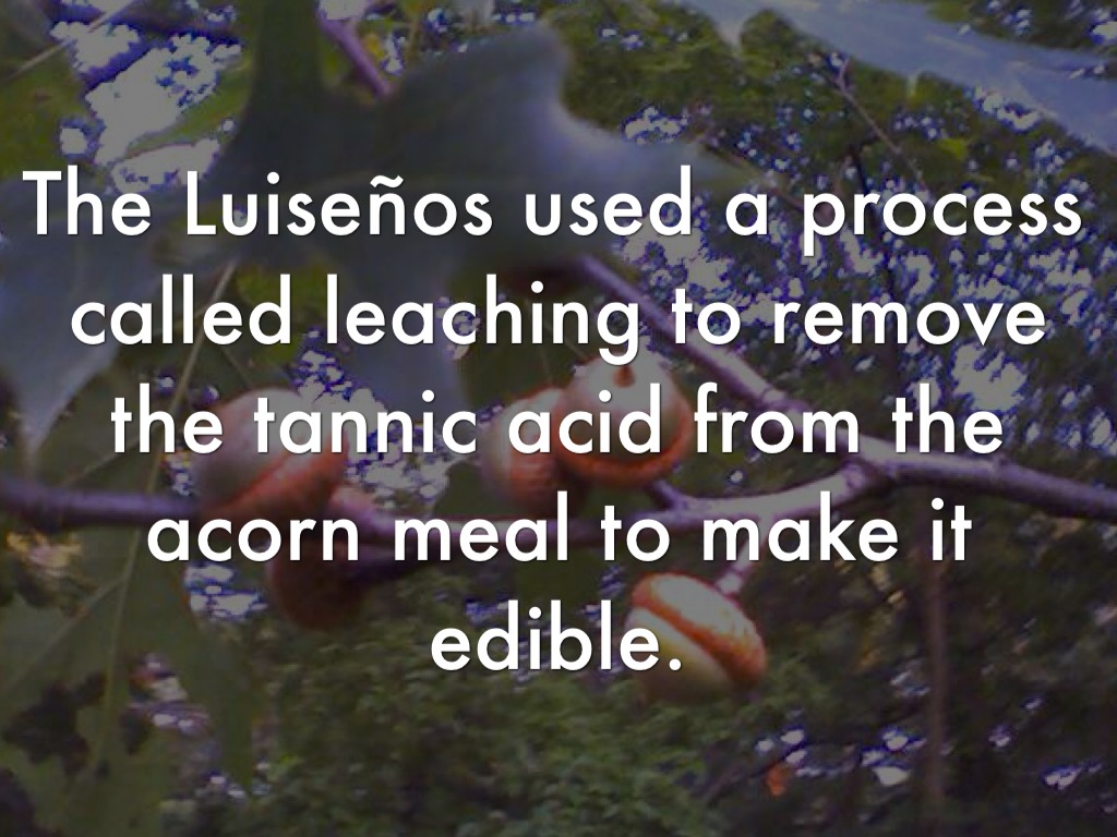 The Luiseños used a process called leaching to remove the tannic acid from the acorn meal to make it edible.