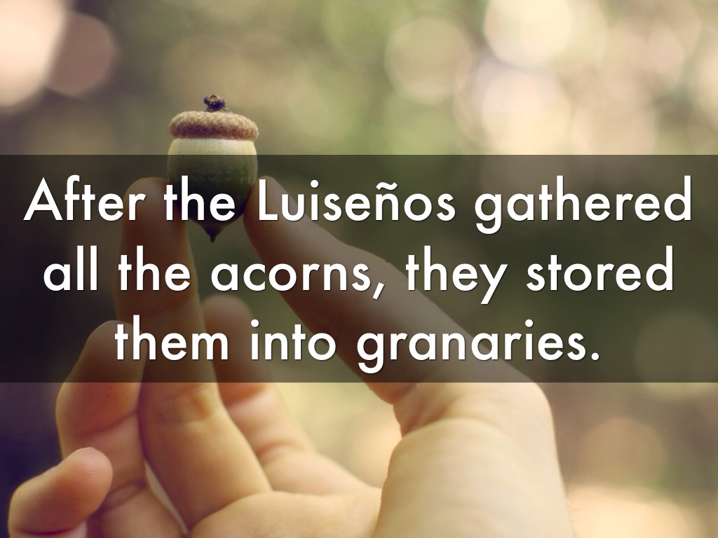 After the Luiseños gathered all the acorns, they stored them into granaries.