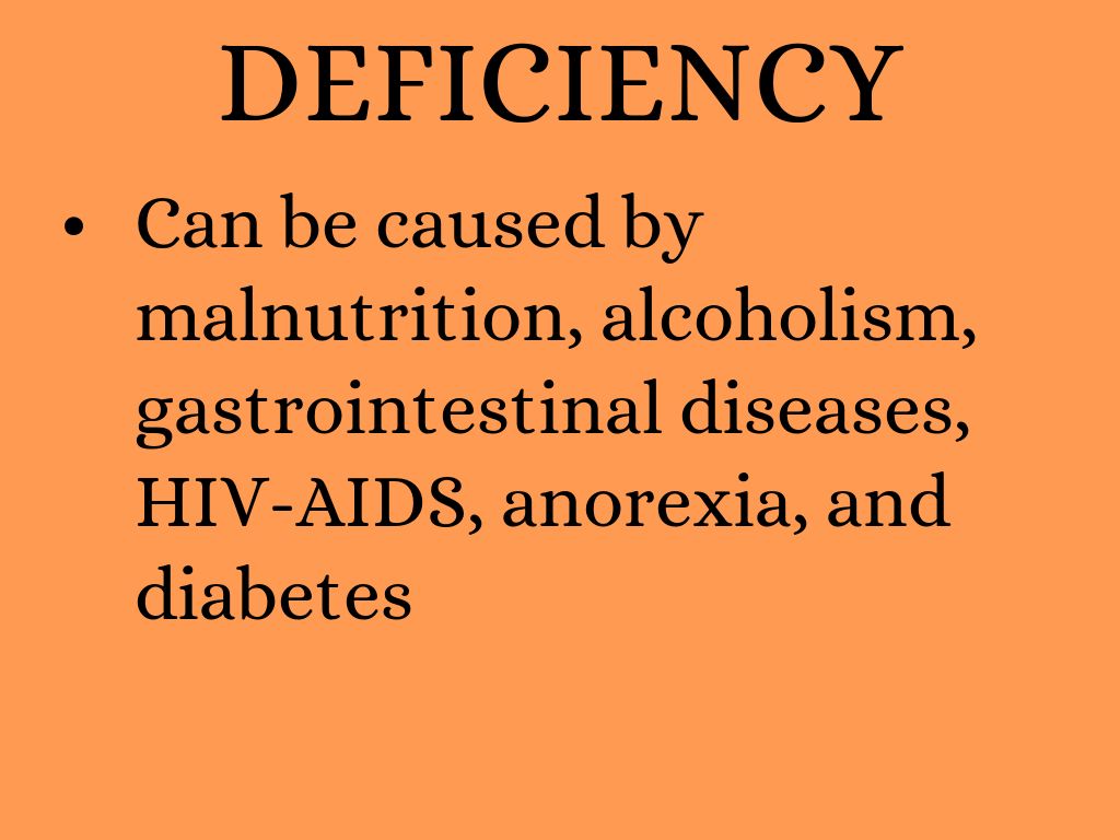 • Can be caused by malnutrition, alcoholism, gastrointestinal diseases, HIV-AIDS, anorexia, and diabetes