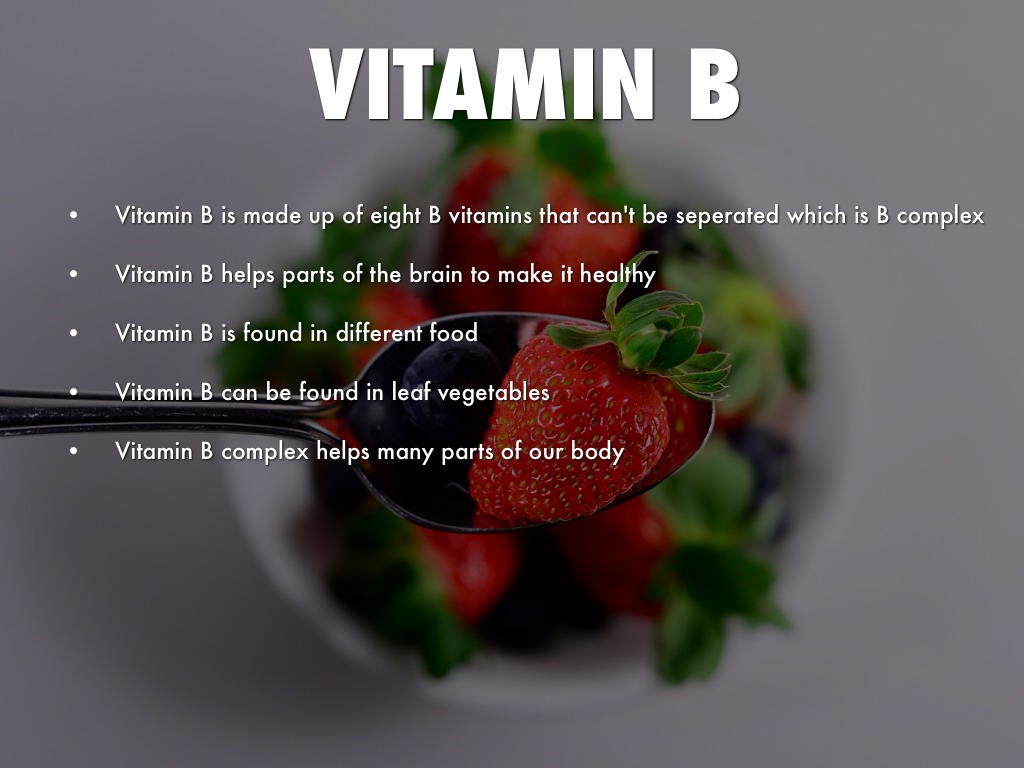 Vitamin B is made up of eight B vitamins that can't be seperated which is B complex