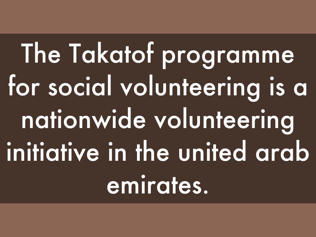 The Takatof programme for social volunteering is a nationwide volunteering initiative in the united arab emirates.