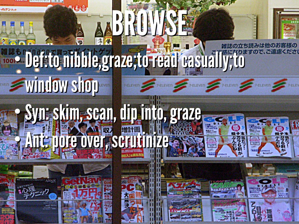 • Def:to nibble,graze;to read casually;to window shop