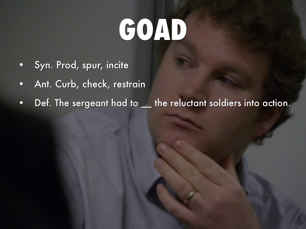 Def. The sergeant had to __ the reluctant soldiers into action.