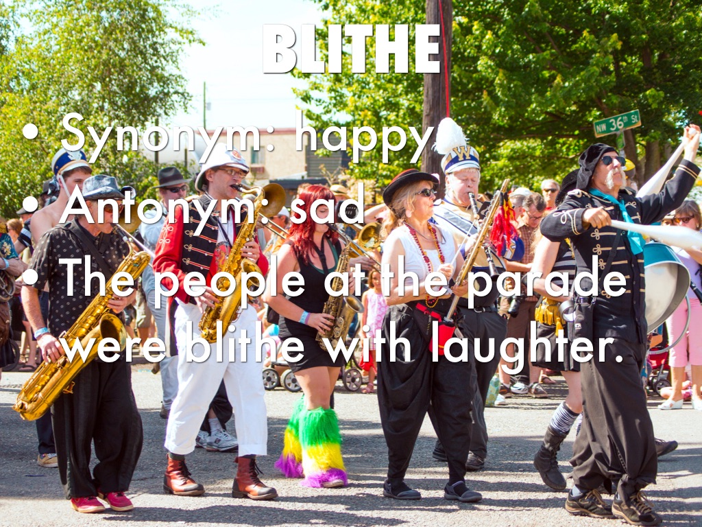 • The people at the parade were blithe with laughter.