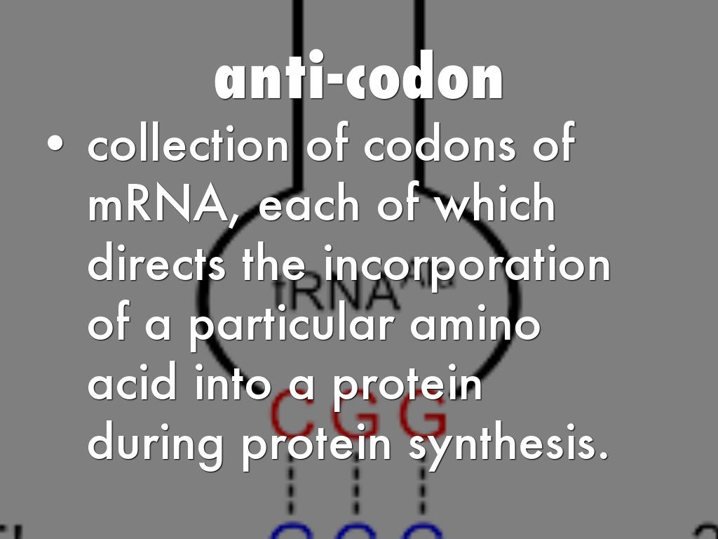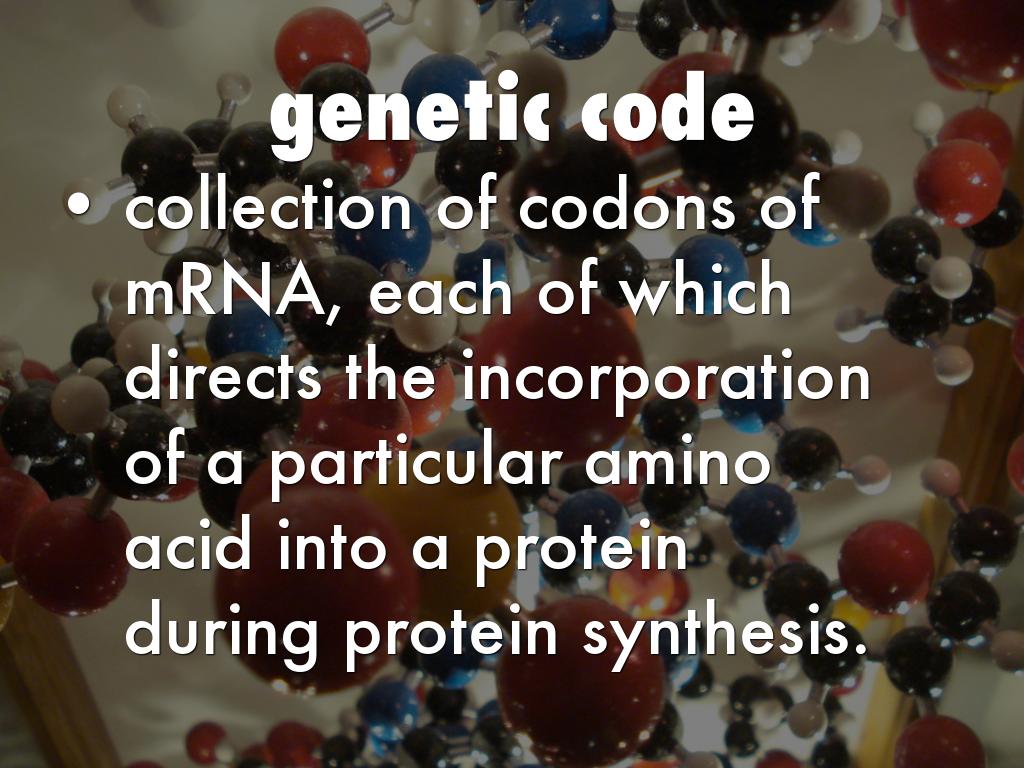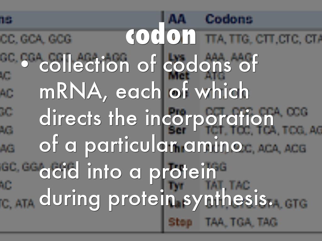 collection of codons of mRNA, each of which directs the incorporation of a particular amino acid into a protein during protein synthesis.
