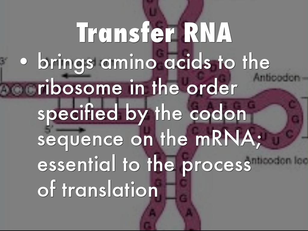brings amino acids to the ribosome in the order specified by the codon sequence on the mRNA; essential to the process of translation