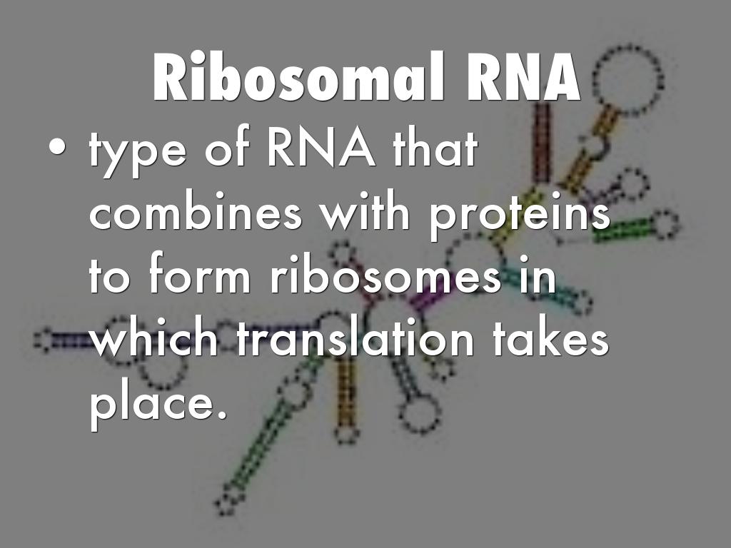 type of RNA that combines with proteins to form ribosomes in which translation takes place.