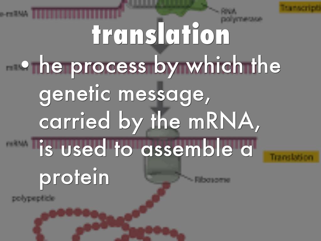 he process by which the genetic message, carried by the mRNA, is used to assemble a protein