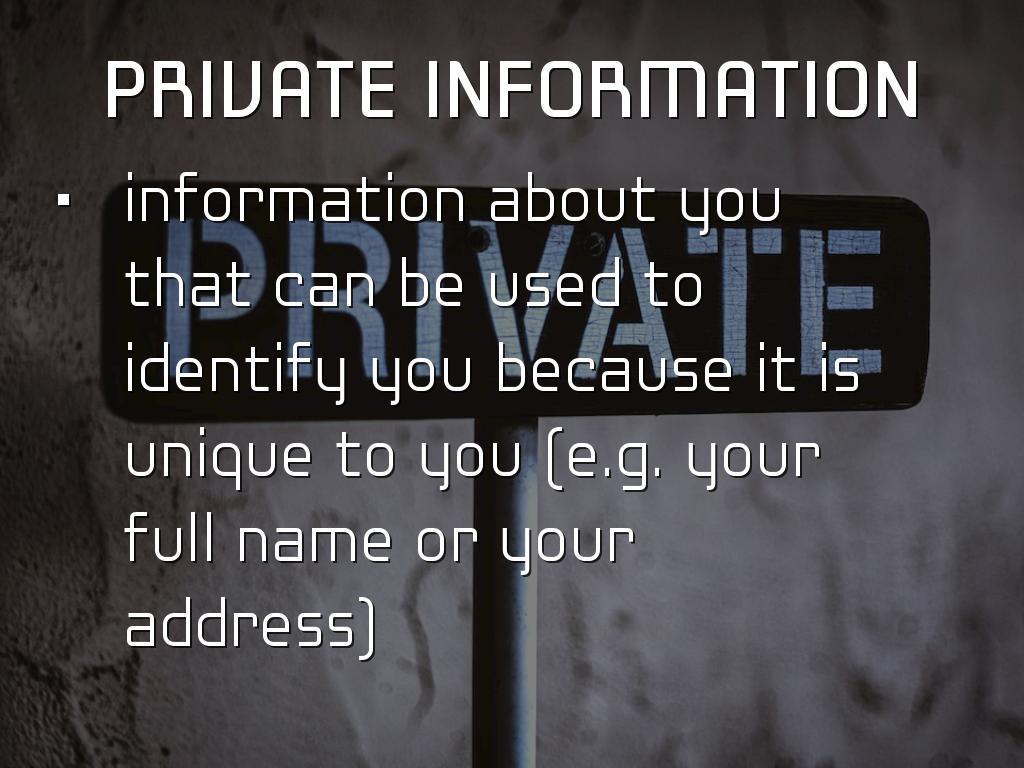information about you that can be used to identify you because it is unique to you (e.g. your full name or your address)