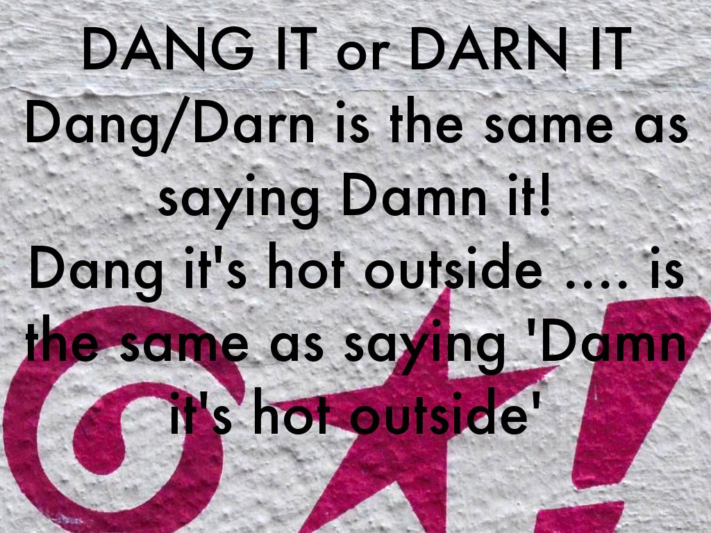 Dang it's hot outside .... is the same as saying 'Damn it's hot outside'