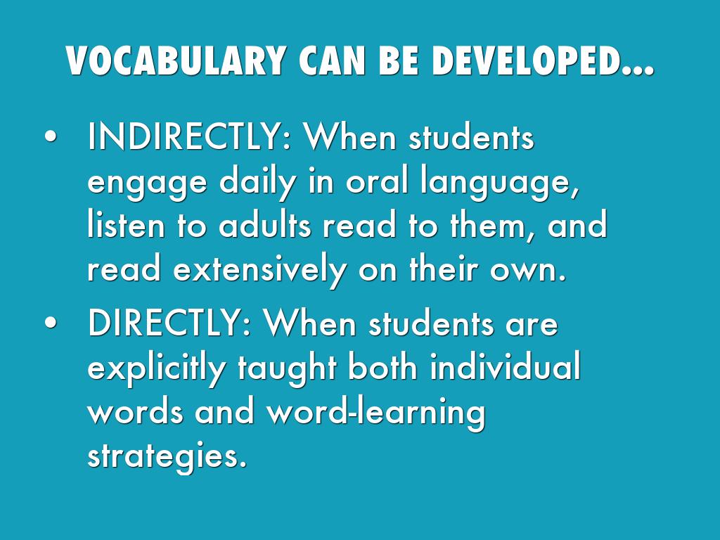 DIRECTLY: When students are explicitly taught both individual words and word-learning strategies.