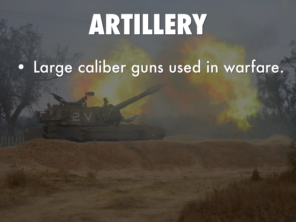 Large caliber guns used in warfare.