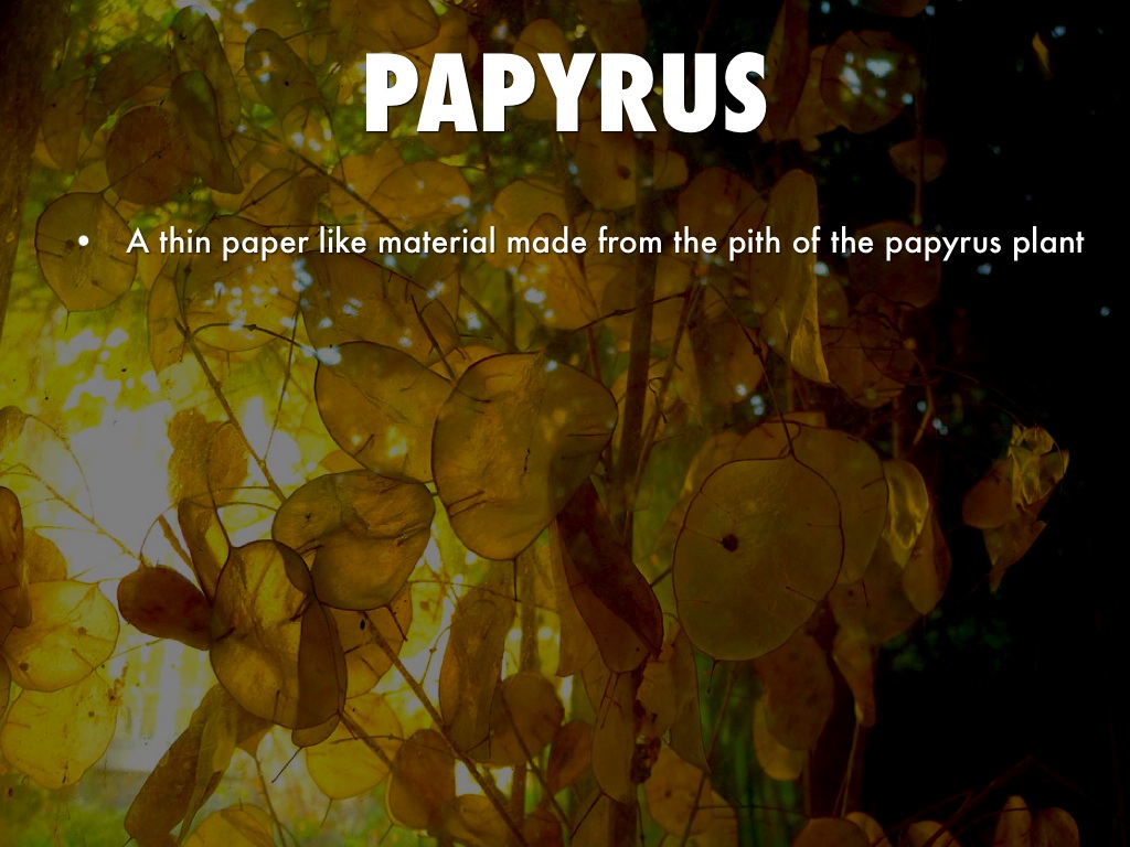 A thin paper like material made from the pith of the papyrus plant